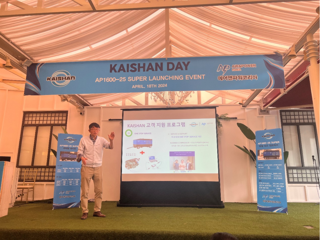 A&P公司總經(jīng)理Mr.Koh Kwanhyun主持了活動,并專題報告、介紹了開山集團,向韓國客戶介紹了開山強大的研發(fā)實力,說明了開山移動空氣壓縮機的性能和技術(shù)特點。來自基礎(chǔ)建設(shè)、樁基應(yīng)用、地?zé)徙@井、水井鉆井、礦山市場的100余位客戶認真聆聽了Mr.Koh的講解。