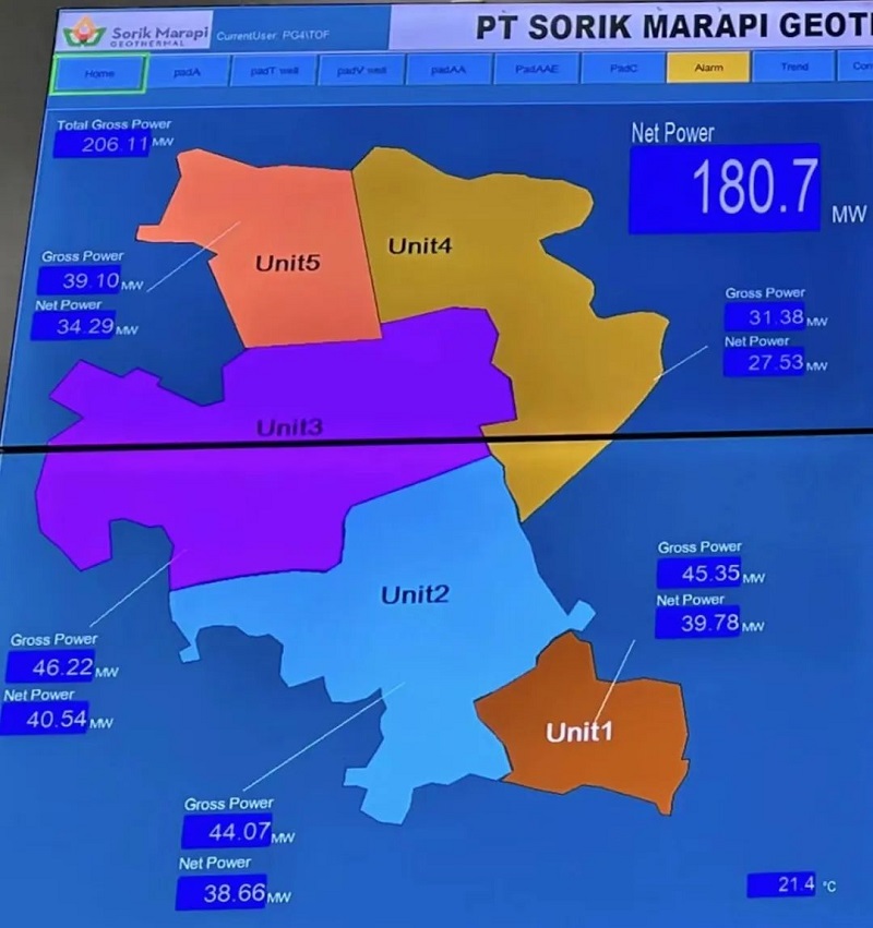這是重要的里程碑事件,標(biāo)志著SMGP地?zé)犭娬具M(jìn)入到"200兆瓦俱樂部”。在全球地?zé)峤纾l(fā)電功率超過200兆瓦的電站(定義為發(fā)電設(shè)備生產(chǎn)的電力,外售電量還需要扣除電站運(yùn)行自耗功)寥寥無(wú)幾,SMGP地?zé)犭娬具@座采用開山擁有完全自主知識(shí)產(chǎn)權(quán)的模塊電站,勢(shì)將成為全球地?zé)峤绲摹懊餍恰保彩翘K門答臘最主要的地?zé)犭娬尽?/span>