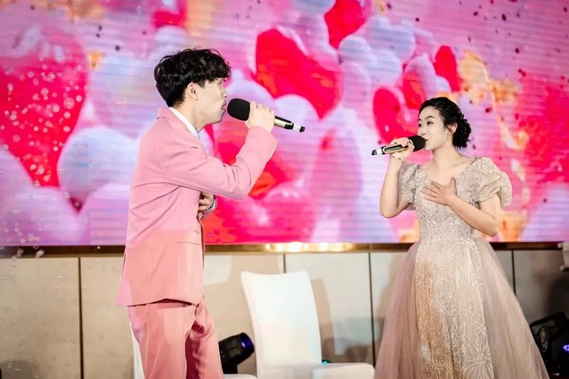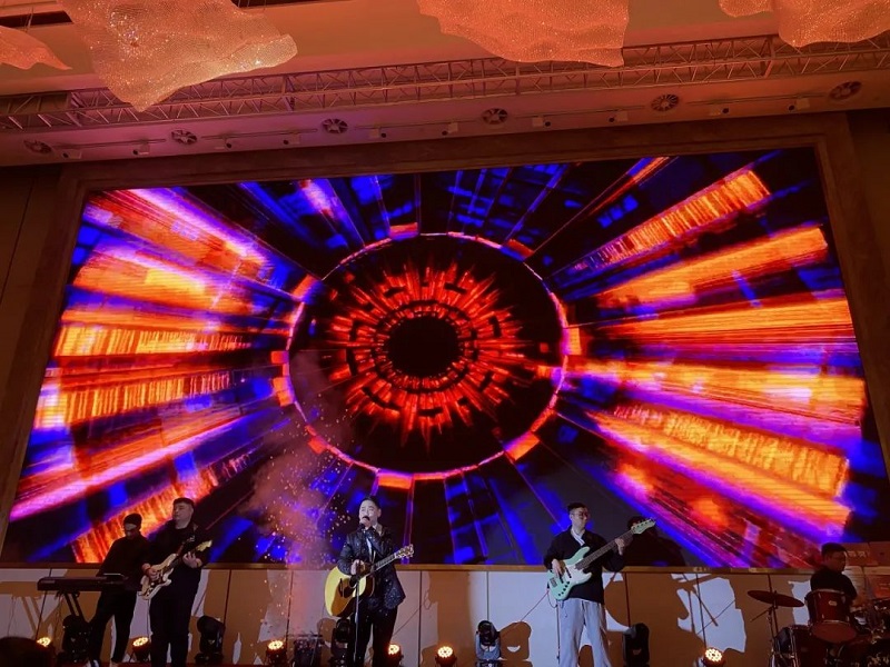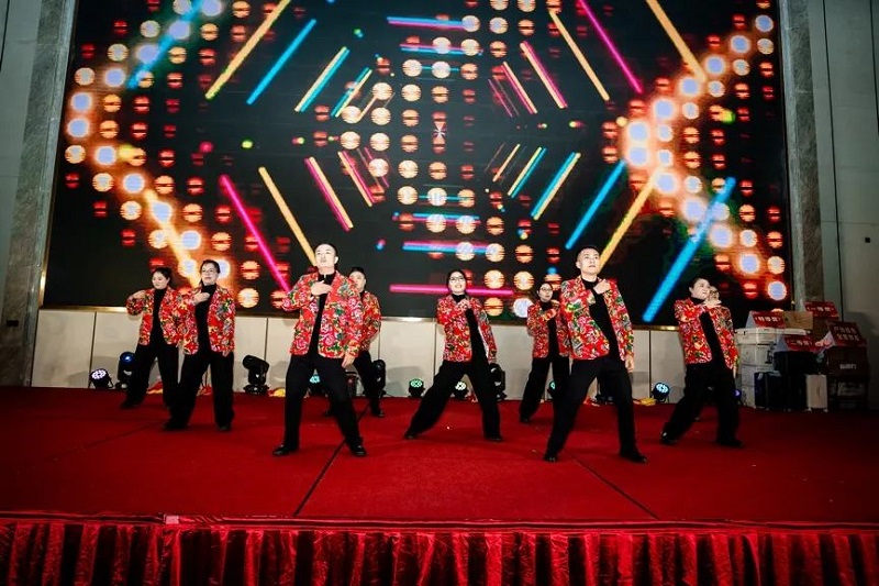 團拜會由開山聯合公司徐濤主唱的開場秀拉開帷幕,絢麗的舞臺背景和熾烈的鼓樂聲讓現場充滿了歡樂祥和的喜慶氣氛。