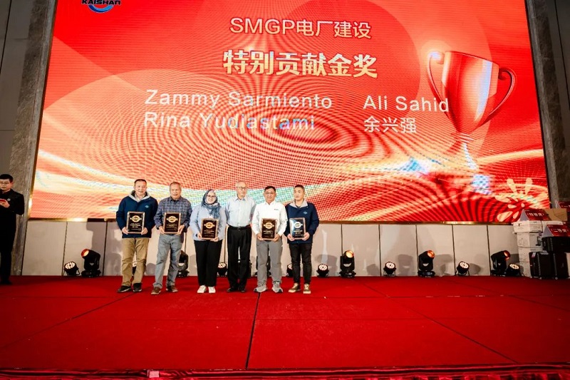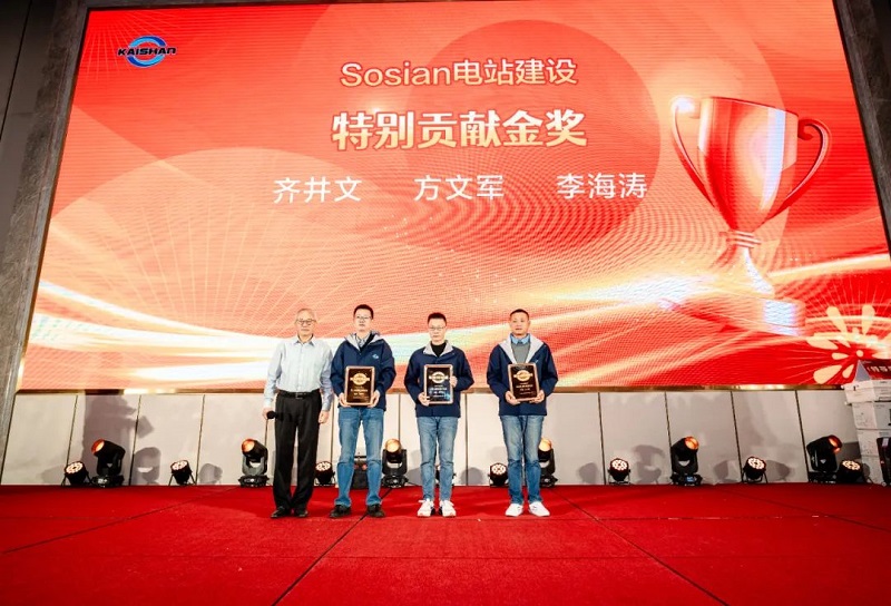 團拜會上,控股集團公司頒發了2024年度特別貢獻獎,表彰在過去一年為公司轉型升級和持續發展做出突出貢獻的團隊成員。SMGP電廠建設團隊、Sosian電站建設團隊、841/844大型無油螺桿主機工藝攻關團隊榮獲年度特別貢獻獎。總經理湯炎博士向獲獎團隊成員頒發了金質和銀質獎牌。