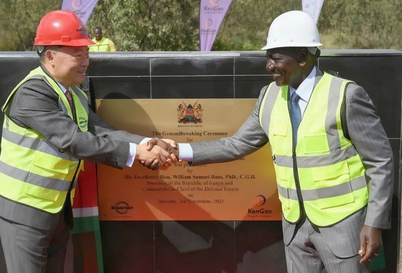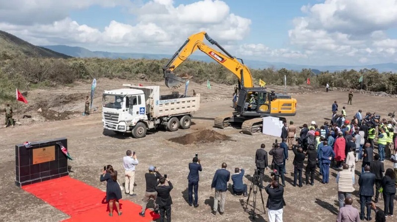 上午九點,肯尼亞共和國總統(tǒng)魯托閣下搭乘的直升飛機降落在綠色化肥廠建設(shè)工地,他與開山控股集團股份有限公司董事長曹克堅首先為項目揭牌,并親自開動挖掘機,為項目建設(shè)挖掘了第一鏟土,宣告了肯尼亞有史以來最大的工業(yè)項目開工建設(shè)。